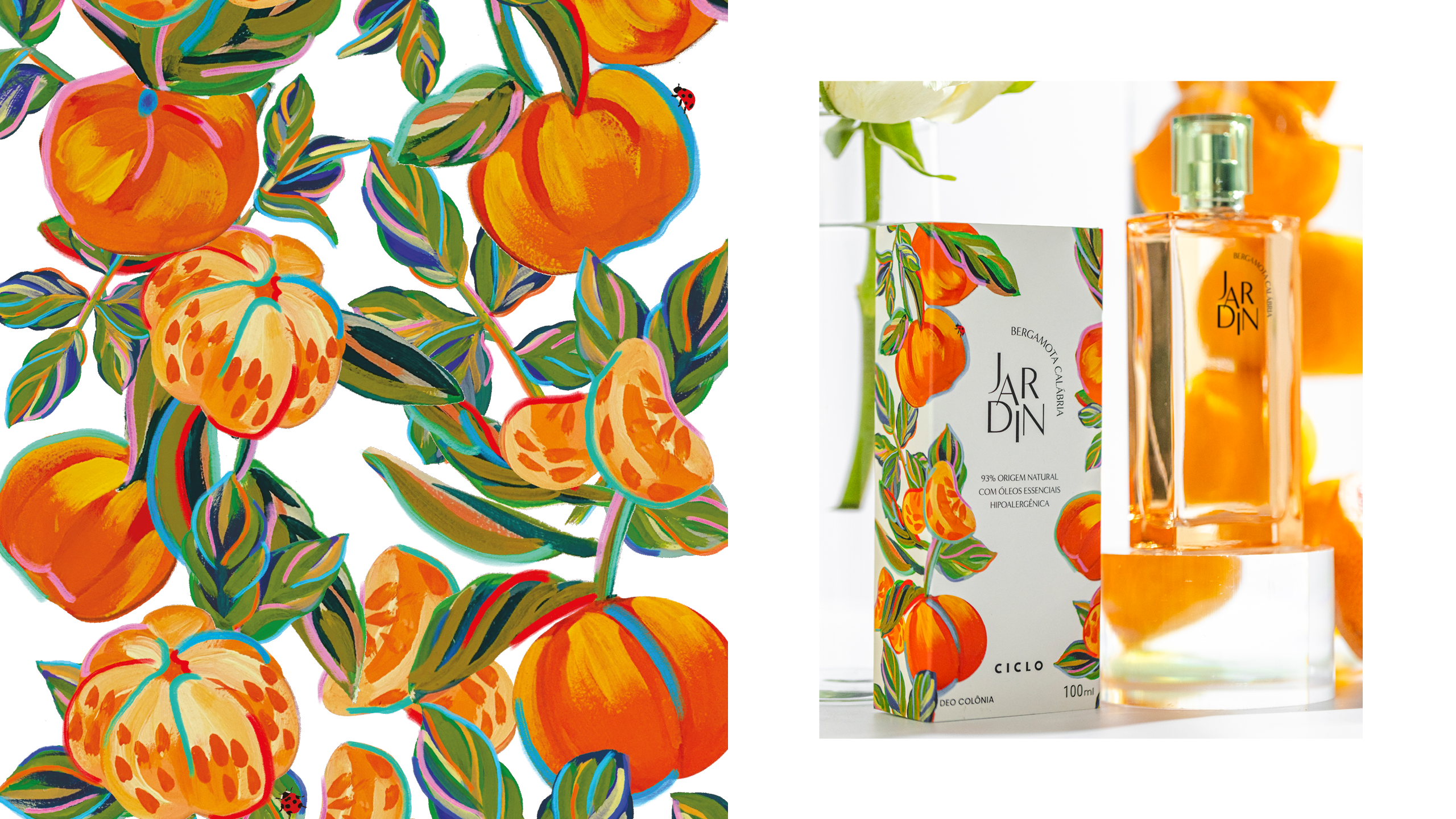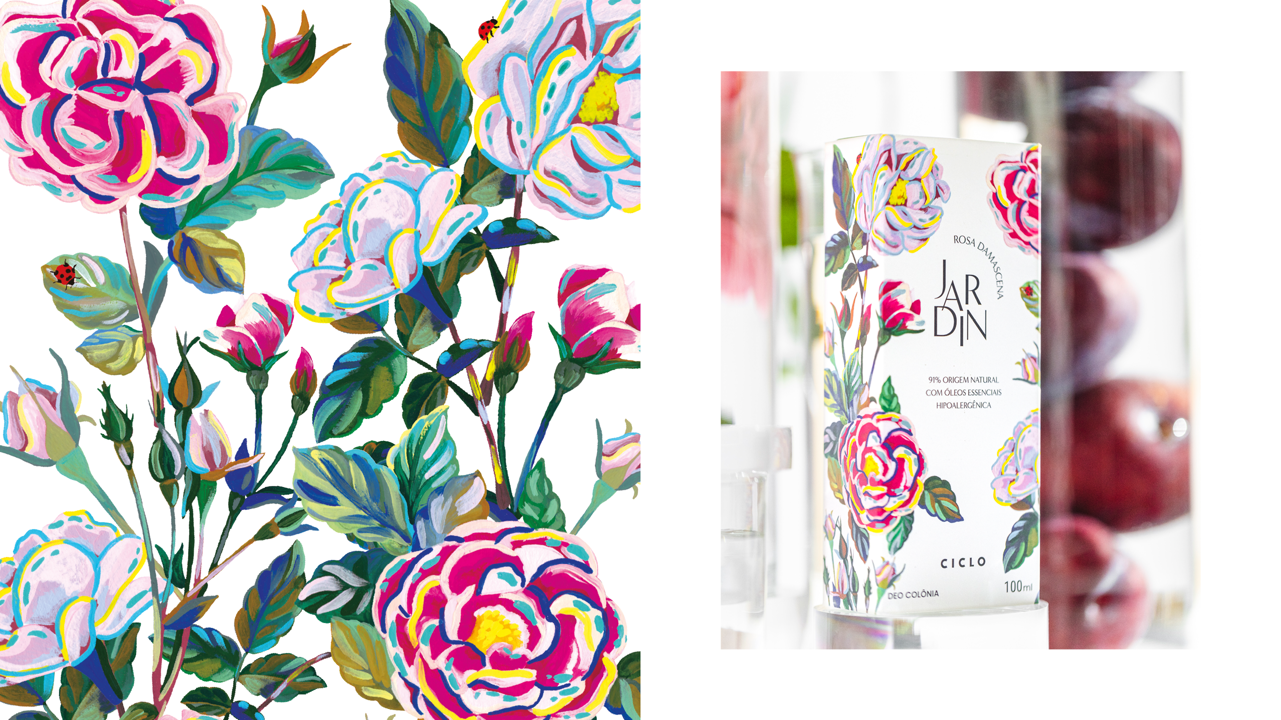 Ciclo Jardin é uma coleção de perfumaria que une elegância e respeito ao meio ambiente através do conceito de Clean Fragrance. Inspirada nos jardins franceses, cada fragrância destaca um ingrediente-chave da perfumaria, sempre priorizando escolhas sustentáveis que minimizam o impacto ambiental. As ilustrações feitas à mão dão vida aos jardins perfumados, refletindo a sofisticação e personalidade dos perfumes.